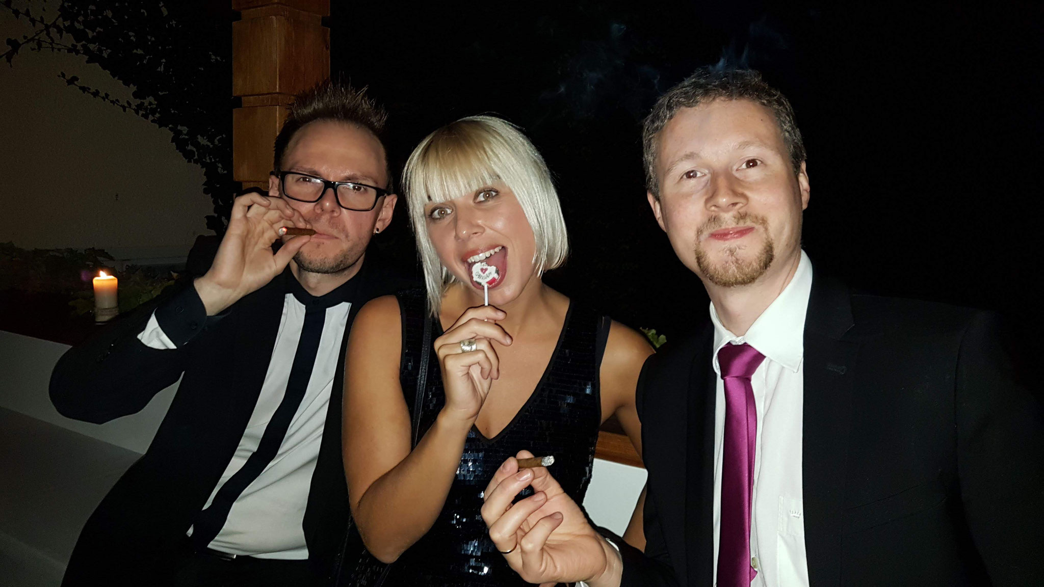 auch noch einmal auf diesem Wege unseren allerherzlichsten Dank für die Begleitung und Gestaltung unserer Fete nach unserer kirchlichen Hochzeit kurz vor Weihnachten 2016 in Olching bei München. Ihr seid als Hochzeitsband einfach der Kracher, und es war goldrichtig, genau Euch diese Aufgabe anvertraut zu haben. Wir wollten eine rauschende Ballnacht, eine krachende Fete, eine „Party nicht von dieser Welt“. Und wir bekamen: genau das. Bereits nach dem Probehören vor neun Monaten war uns klar, dass wir mit Euch als Hochzeitsband genau den Trüffel gefunden haben, den wir für unsere Hochzeitsfeier brauchen. Was ihr dann jedoch von früh abends bis in den Morgen aus dem Hut gezaubert habt war ein unglaubliches, alle beseelendes Feuerwerk von der ersten Sekunde an und genießt schon heute unter all unseren Gästen Legendenstatus. In deren, und nicht zuletzt in unserem Namen also noch einmal: unseren herzlichsten Dank ans gesamte Team für eine unvergessl. Feier!!!!