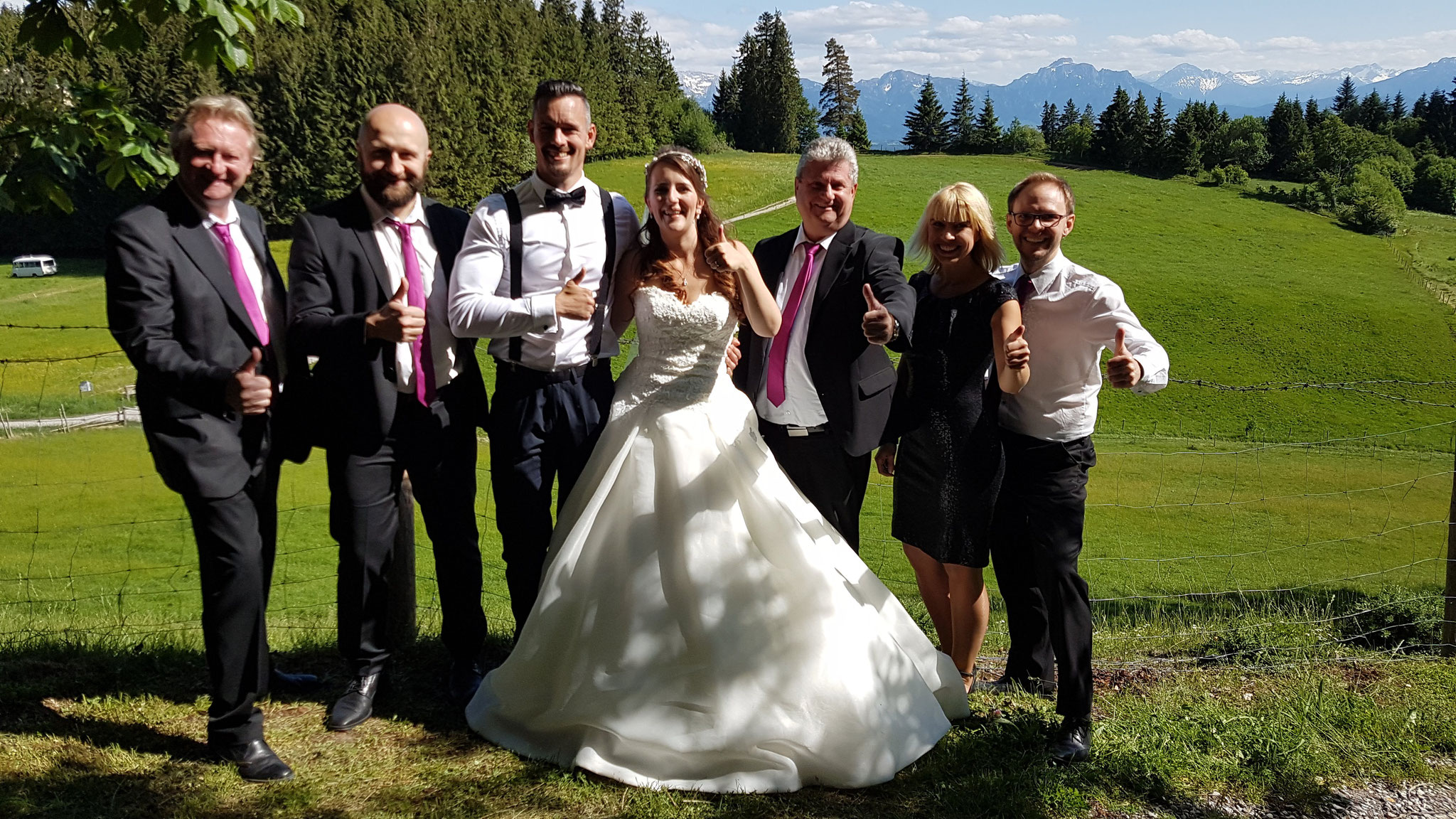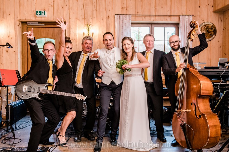 vielen lieben Dank für die tolle musikalische Untermalung unserer Hochzeit! Wir hatten viel Spaß mit Euch und werden Euch jederzeit weiterempfehlen! Auch das Feedback unserer Gäste war durchwegs positiv. Das war für uns allerdings keine große Überraschung, wenn man mal gesehen hat, wie voll die Tanzfläche an dem Abend war. Ein persönliches Highlight für uns war definitiv die Brautentführung! Nachdem wir der Sache anfangs doch etwas unsicher gegenüberstanden, waren wir umso mehr begeistert. Viel mehr Stimmung auf einer Feier ist einfach nicht machbar. In diesem Sinne bleibt so wie Ihr seid, dann werden mit Sicherheit noch viele weitere Brautpaare einen wunderschönen Tag mit eurer Hochzeitsband genießen können!